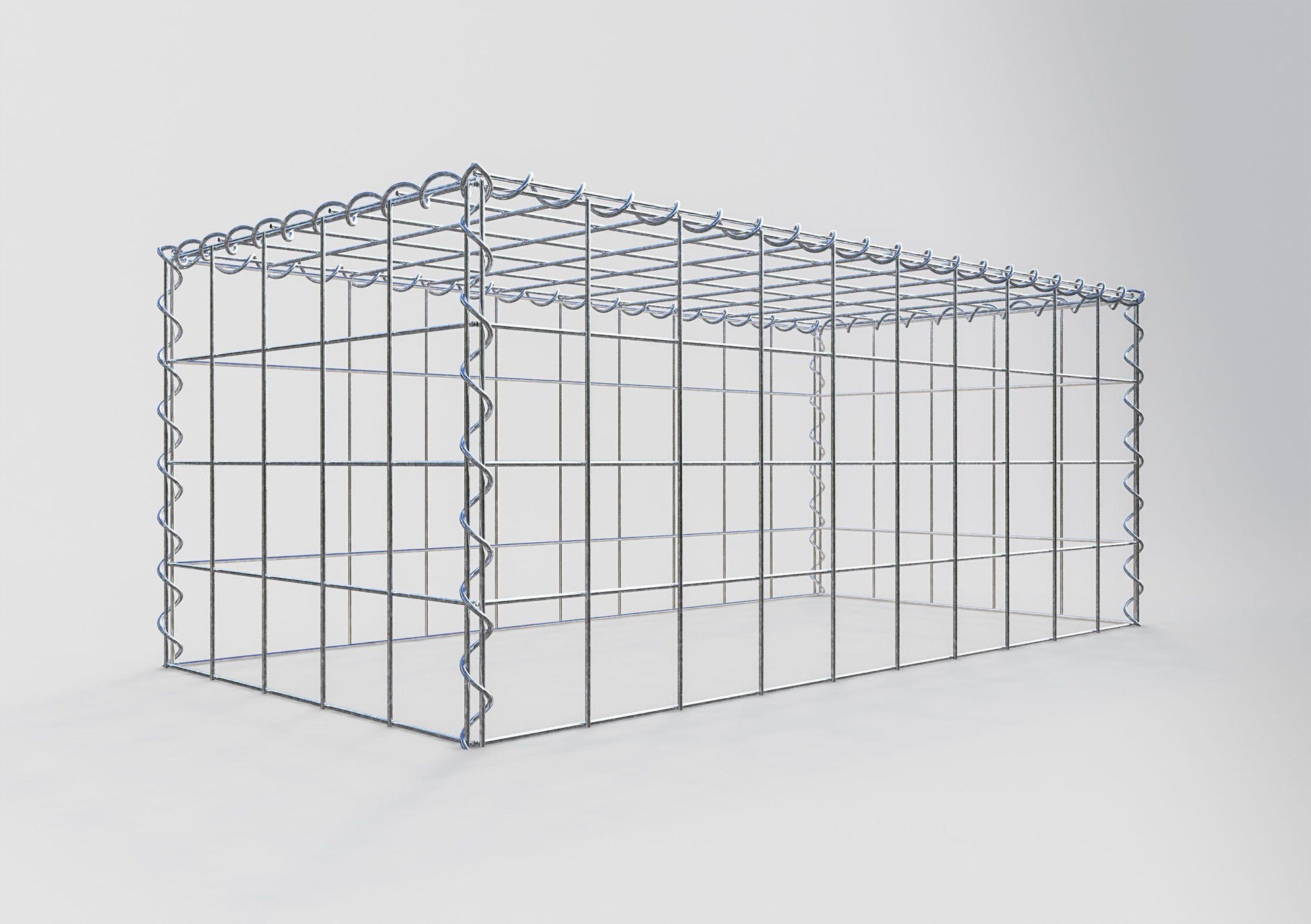 - Hinweis: kein eigenes Bodengitter – die Verbindung erfolgt über das Deckelgitter und den Verschluss der unteren Gabione.
