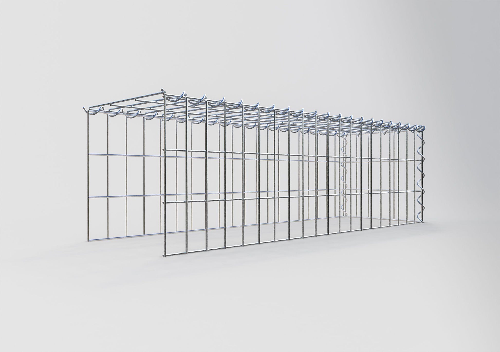 Este gavión no tiene rejilla frontal ni en la base. Esto permite que su gavión crezca tanto en longitud como en altura. Tenga en cuenta que el