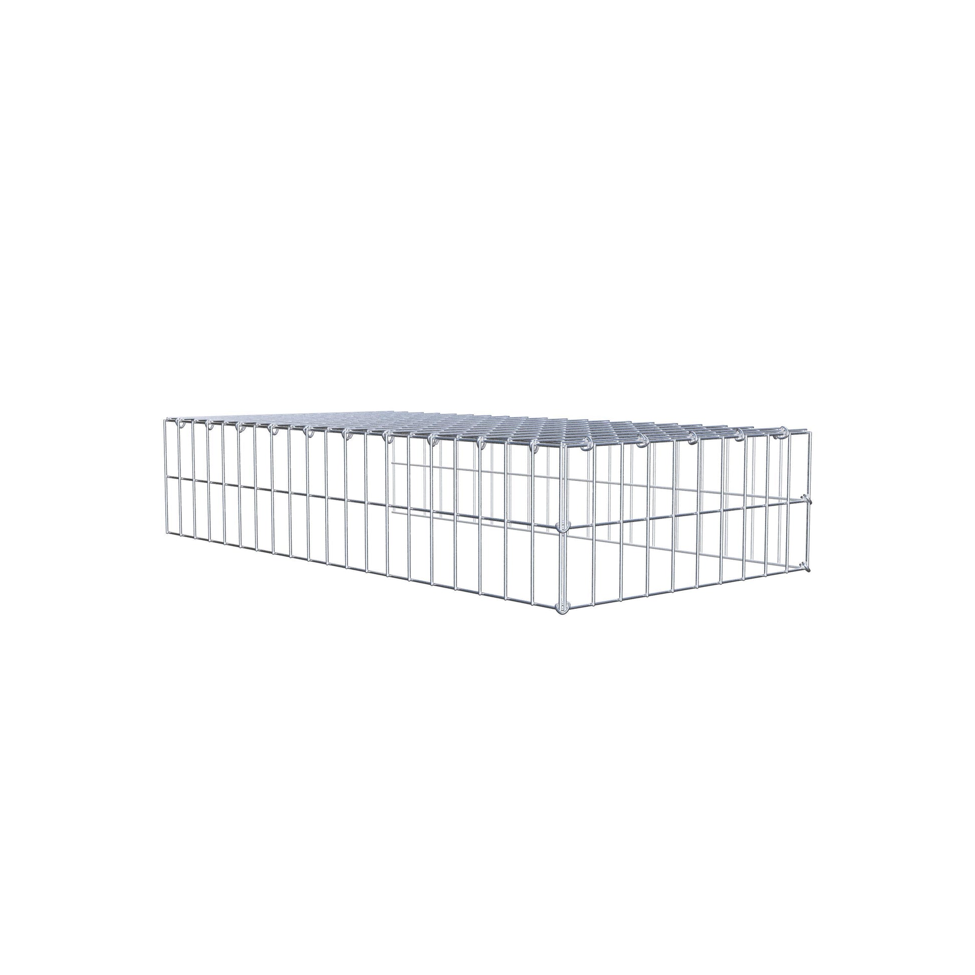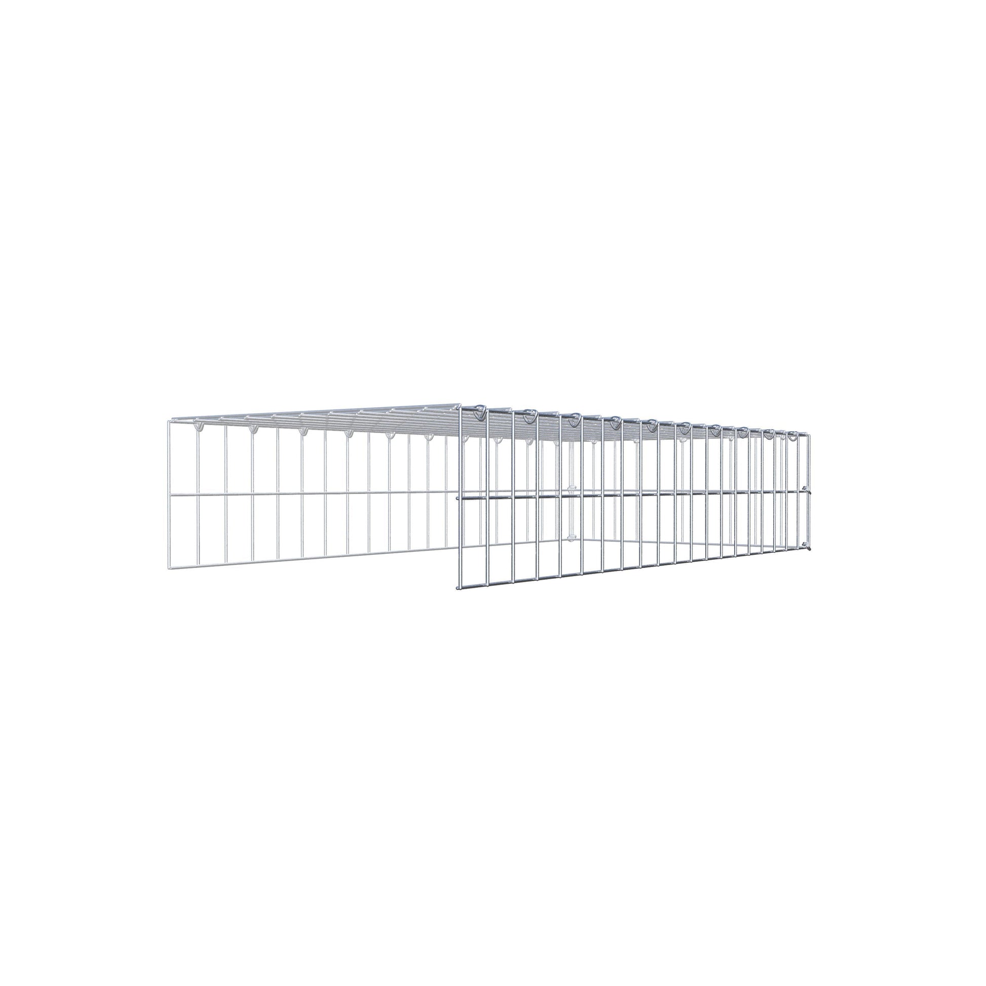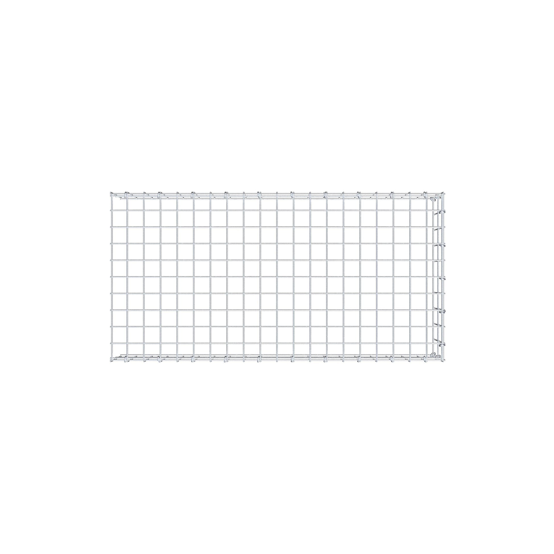 - Remarque : pas de propre grille de fond ni de grille frontale - la liaison se fait par la grille du couvercle et la fermeture du gabion inférieur ainsi que par la fermeture du gabion latéral.