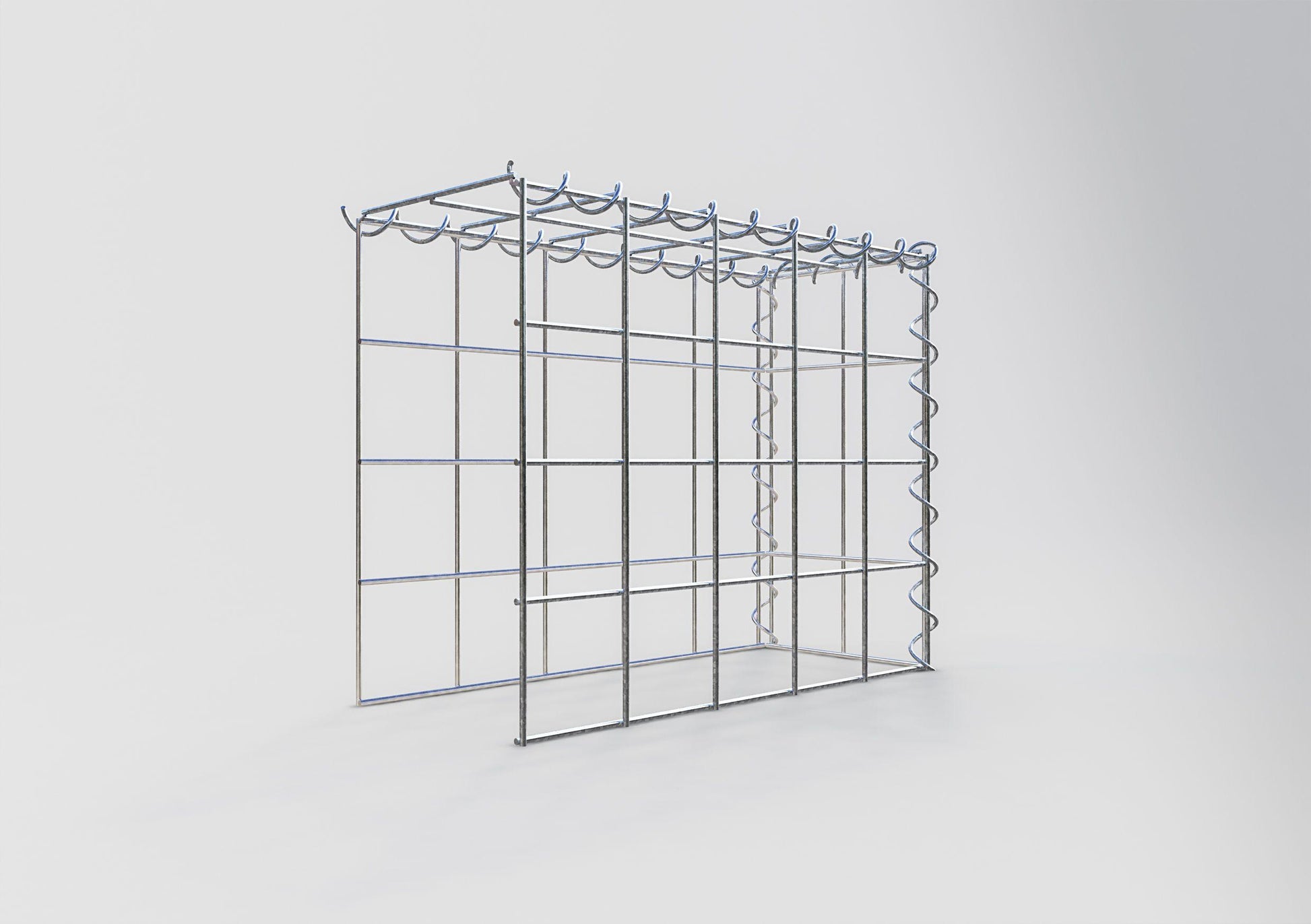 Relie les grilles sans aucun outil - rapidement, facilement et en toute sécurité. Les spirales sont la manière la moins compliquée de construire des gabions stables à partir de nos grillages. Le fil de fer de 4 mm d'épaisseur est plié en forme de spirale et est torsadé à travers les grillages au niveau des bords. Tourne la spirale le long du bord pour que les grillages soient uniformément et solidement reliés entre eux.