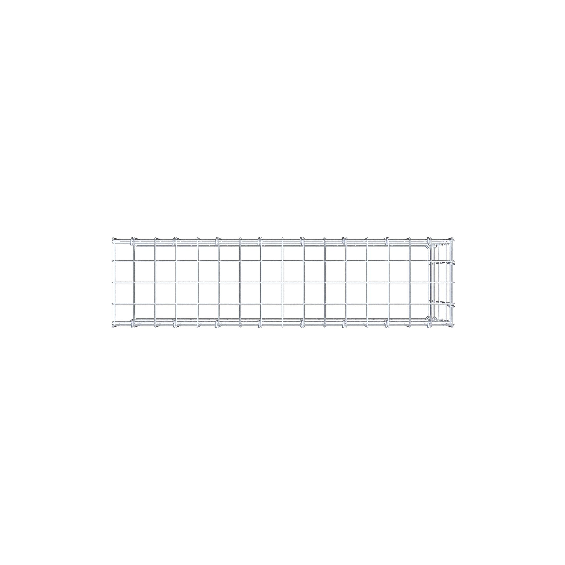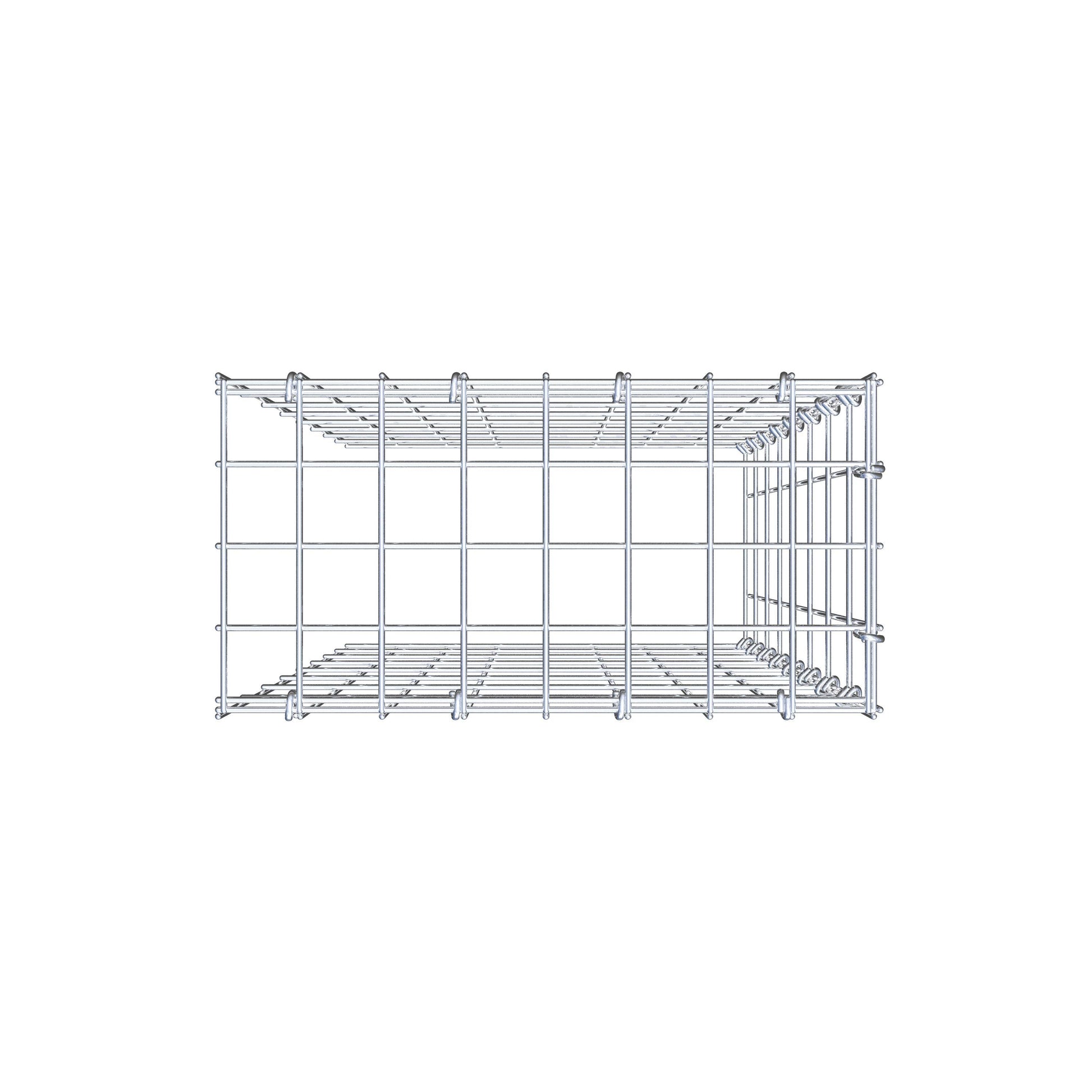 • Remarque : pas de propre grille de fond ni de grille frontale - la liaison se fait par la grille du couvercle et la fermeture du gabion inférieur ainsi que par la fermeture du gabion latéral.