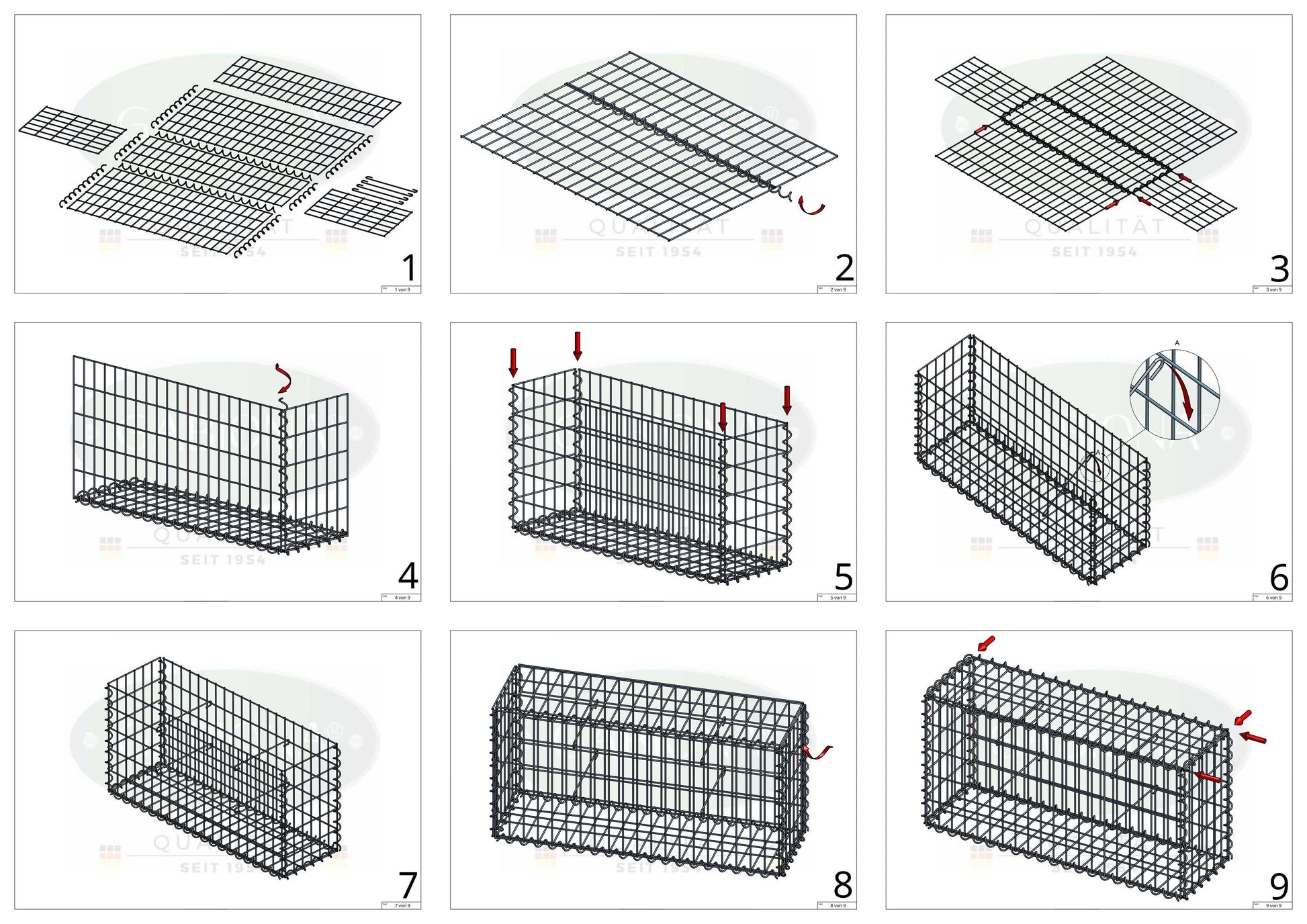 La fornitura comprende 12 griglie per gabbione, spirali per il collegamento e distanziali per stabilizzare la forma.