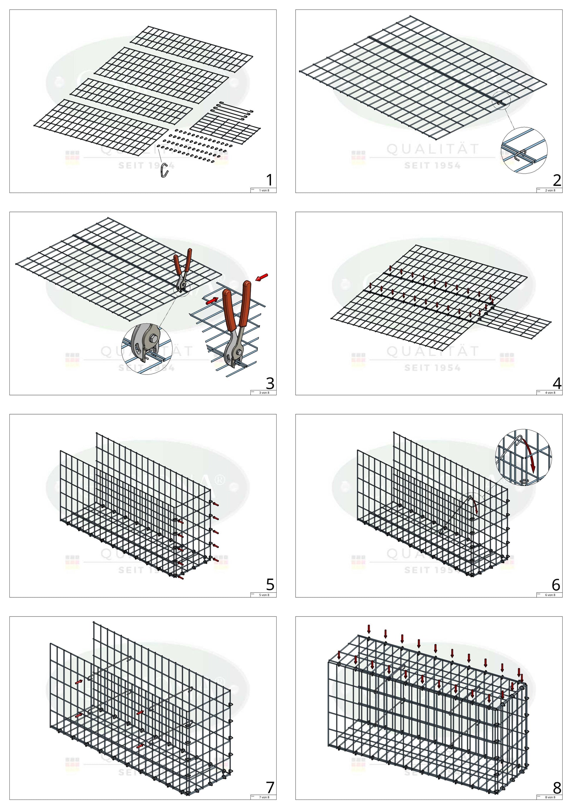 Die Ringe bestehen - wie auch die Gitter - aus galvanbeschichtetem Draht.