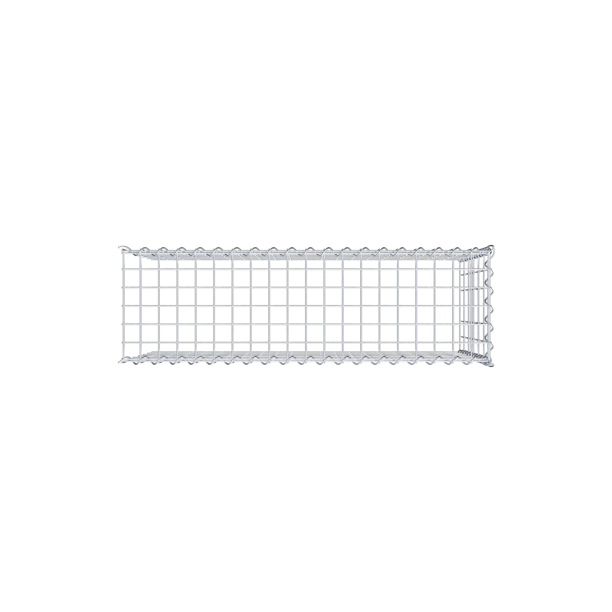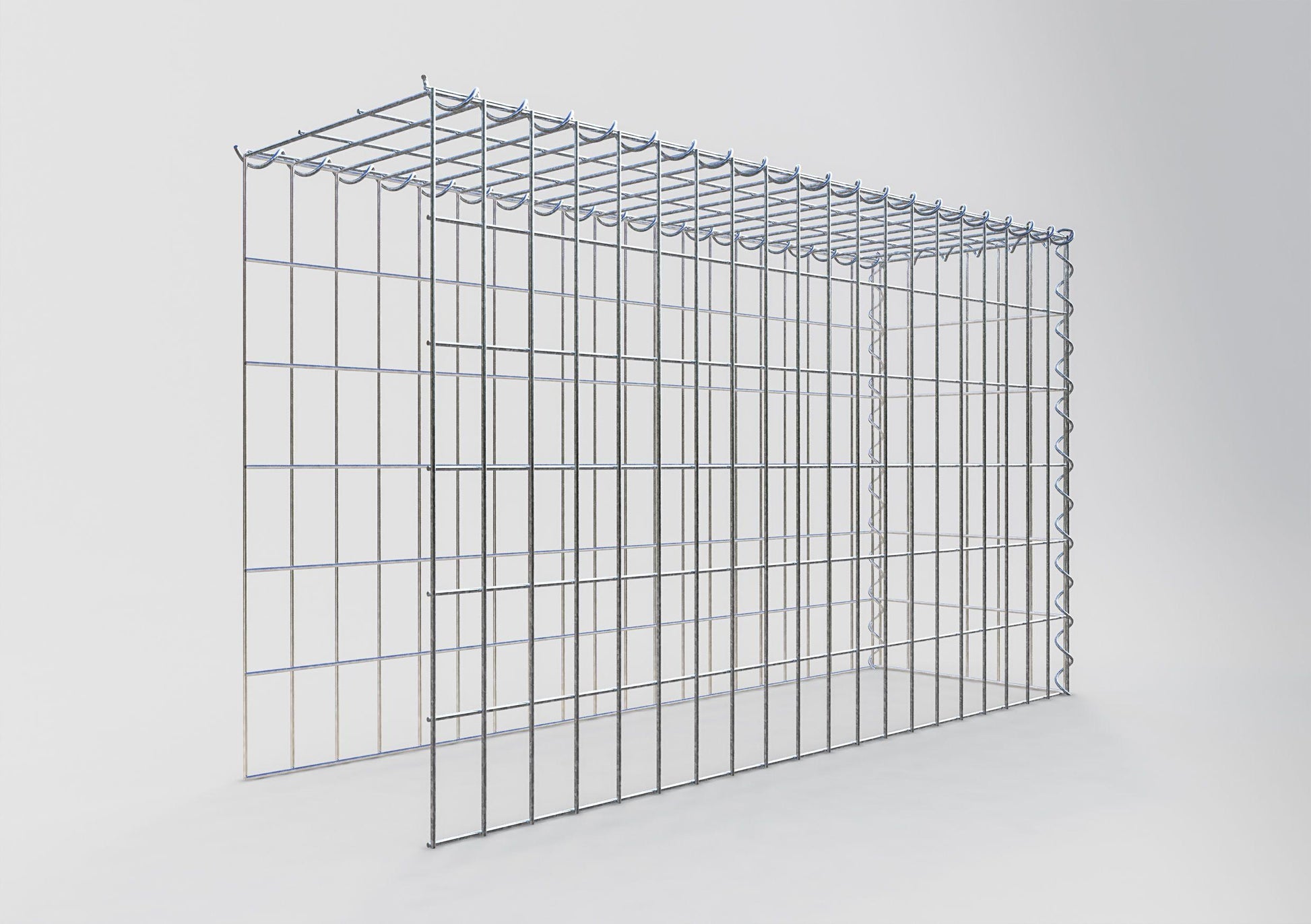 Este gabião não tem grade frontal e inferior. Isso permite que seu gabião cresça tanto em comprimento quanto em altura. Observe que o