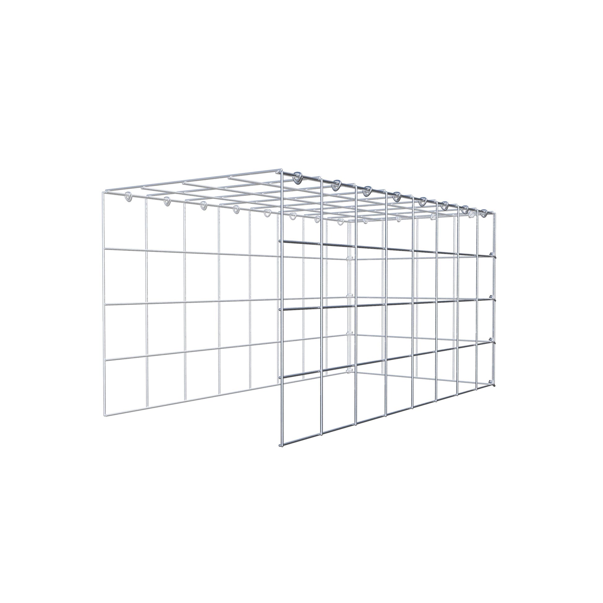 Este gabião não tem grade frontal e inferior. Isso permite que seu gabião cresça tanto em comprimento quanto em altura. Observe que o