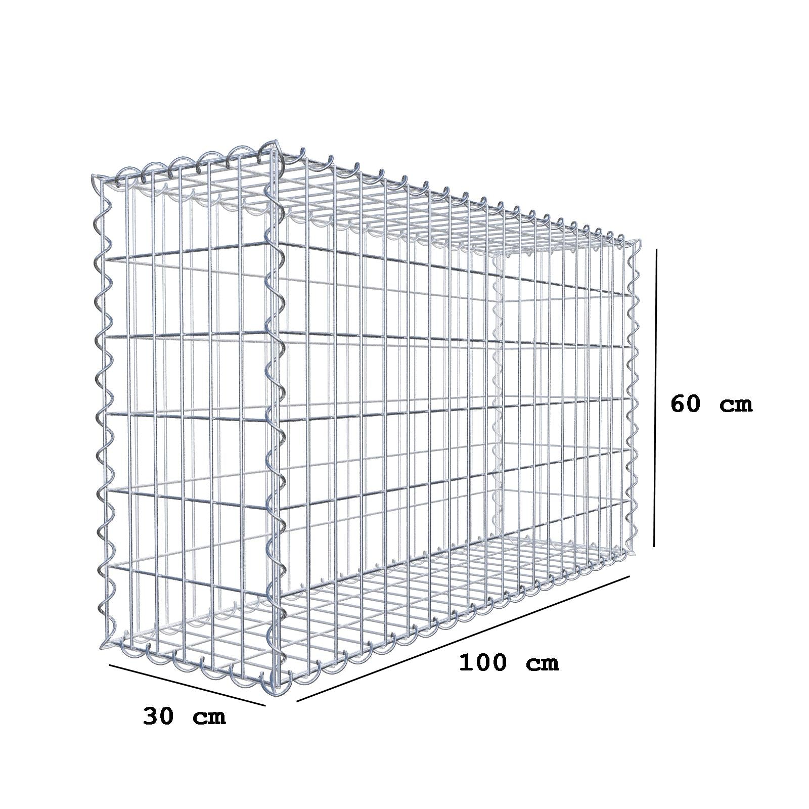 Gabion 100 cm x 60 cm x 30 cm (L x H x D), maskstorlek 5 cm x 10 cm, spiral